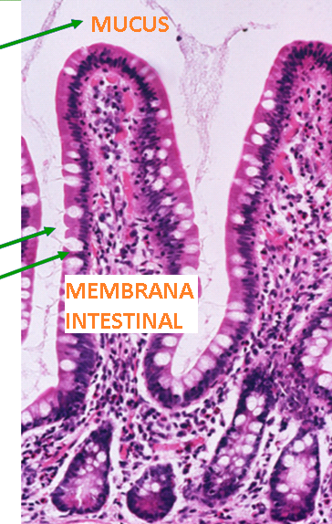 - La mucosa intestinal, que es donde se implanta el mucus intestinal y permite el paso de los nutrientes al sistema circulatorio que los distribuirá a todo el organismo.